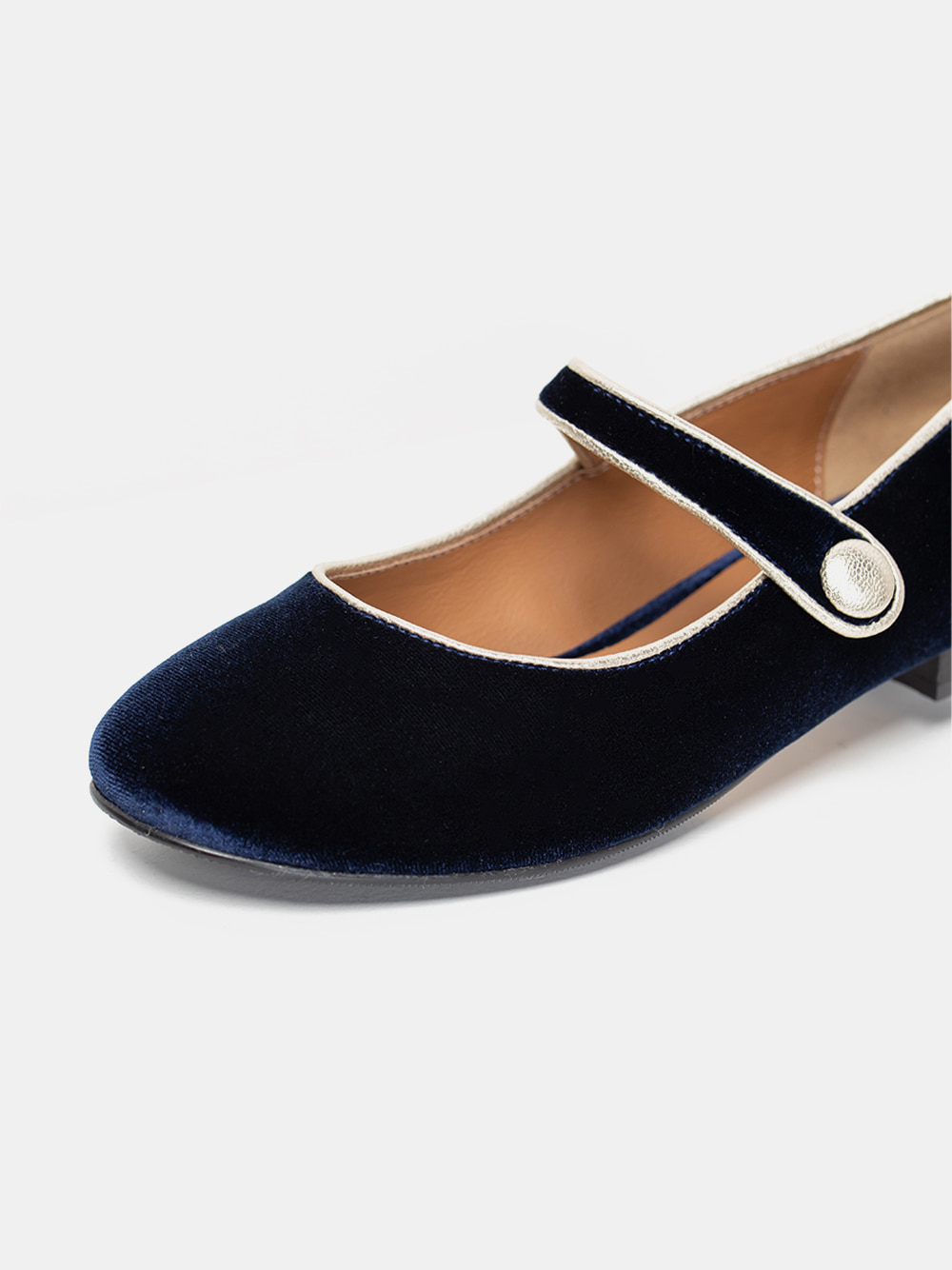 exclusive COZY 라운드 스트랩 플랫 Navy Velvet