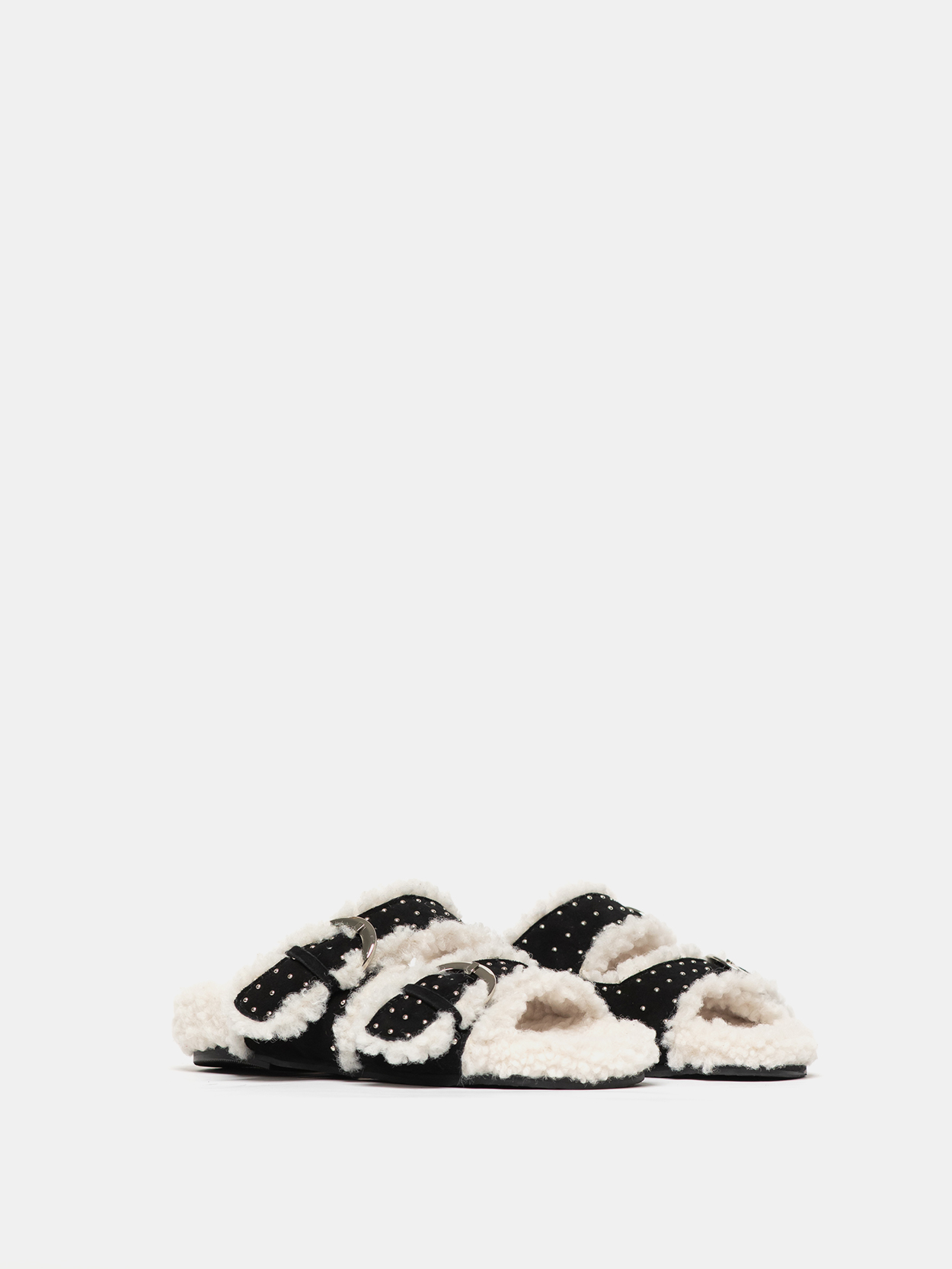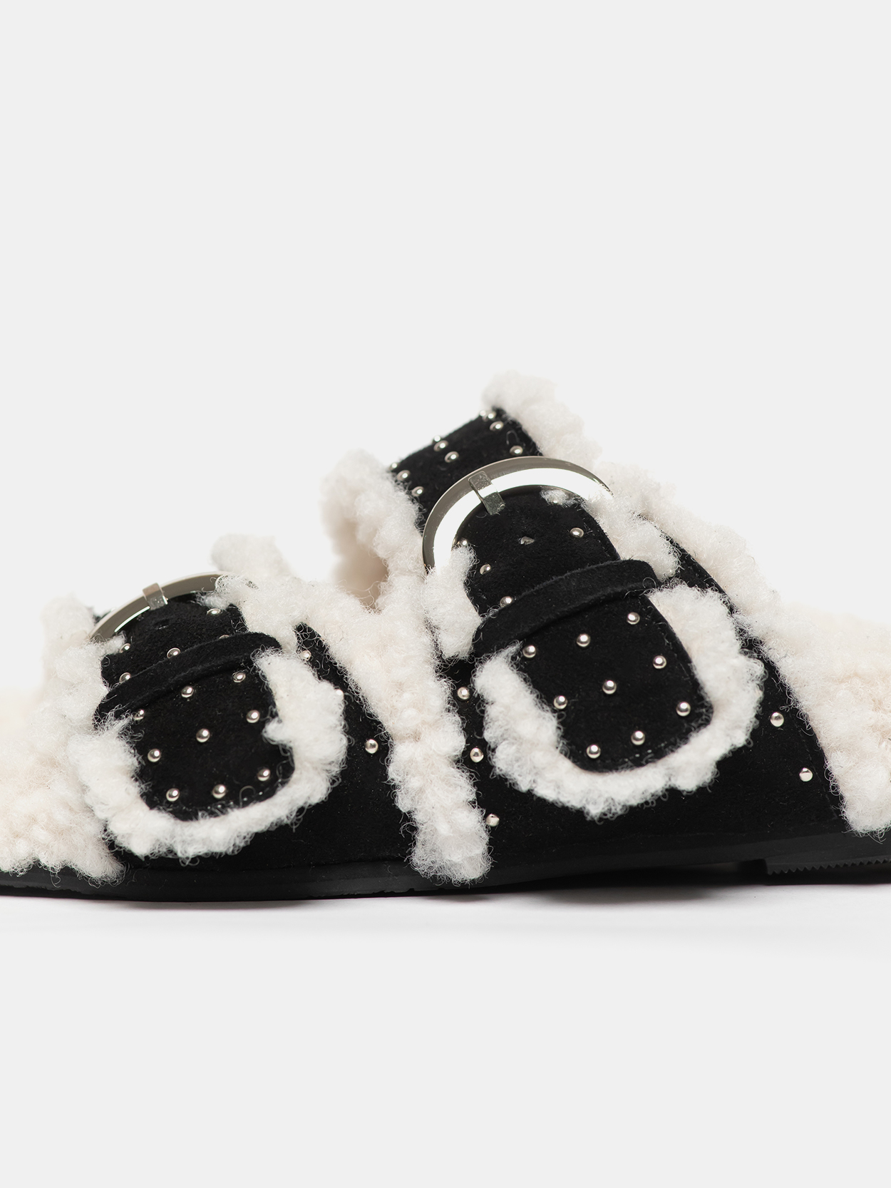 VERENA Stud Shearling 버클 슬리퍼 Black